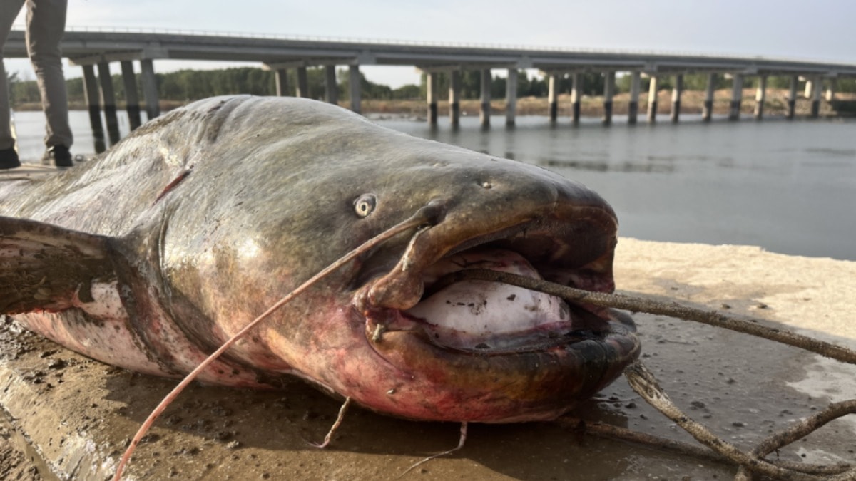 Edirne'de Meriç Nehri'nde, oltayla yaklaşık 2,5 metre boyunda 100 kilogram ağırlığında yayın yakalandı.