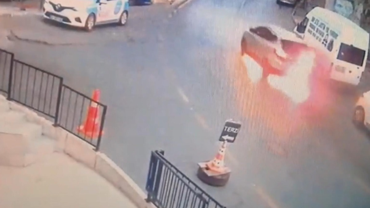 Kağıthane'de caddede seyir halinde olan bir araç henüz bilinmeyen bir nedenle alev aldı. Alevler kısa sürede aracın alt kısmına yayılırken, çevredekilerin uyarısı üzerine araç sürücüsü otomobili yol kenarında durdurdu. Araçtakiler can havliyle kendilerine dışarı atarken, alevlere ilk müdahaleyi çevredeki vatandaşlar yaptı.