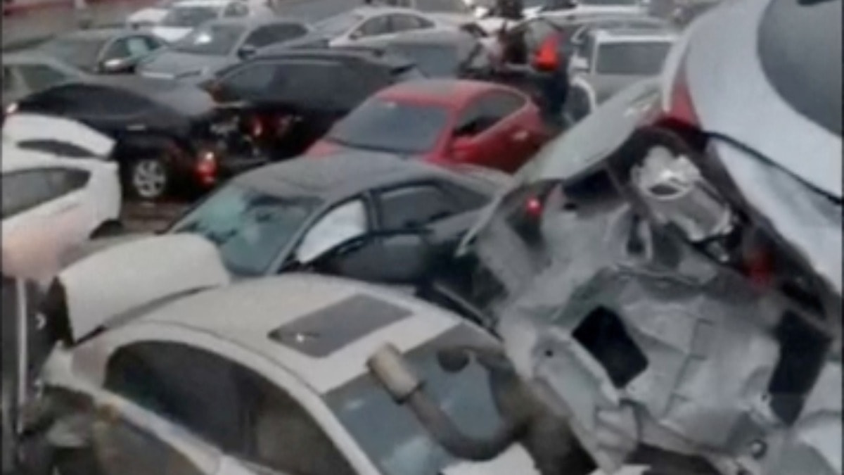 Devlet televizyonu CCTV ve sosyal medyada yer alan görüntülerde çok sayıda aracın otoyolda gelişigüzel bir şekilde durduğu ve bir aracın havada ciddi bir açıyla takla attığı görülüyor. Cam ve enkazın her yere saçıldığı görülüyordu.