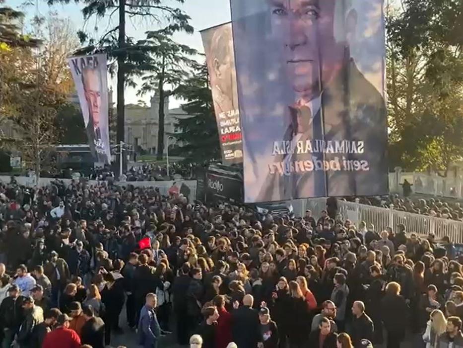 Sabah erken saatlerden itibaren Dolmabahçe'ye akın eden kalabalık saray çevresi ve bahçesinde büyük bir kalabalık oluşturdu.