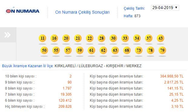 ON NUMARA ÇEKİLİŞ SONUÇLARI