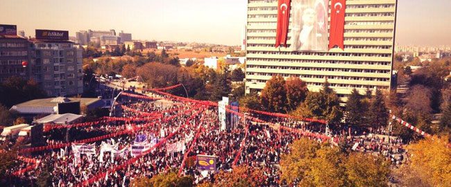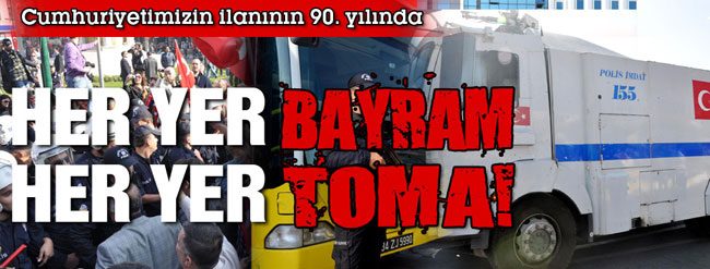 Türkiye'nin dört bir yanında Cumhuriyet'in 90. yılı coşkulu bir şekilde kutlanıyor. Ankara'daki Cumhuriyet kutlamaları saat 11'de Tandoğan Meydanı'nda başladı. Onbinlerin akın ettiği coşkulu kutlamalarda "Mustafa Kemal'in askerleriyiz", "her yer Taksim her yer direniş", "her yer ODTÜ her yer direniş" sloganları atıldı. Şehrin dört bir yanından katılımın olduğu kutlamalara metroyla gelmek isteyen vatandaşlar ise zor anlar yasadı. Ankara Valiliği'nin kararıyla Ankara Metrosu'nun Ankaray hattının Tandogan durağı kullanıma kapatıldı. Tandoğan'da CHP Lideri Kemal Kılıçdaroğlu bir konuşma yaptı.
