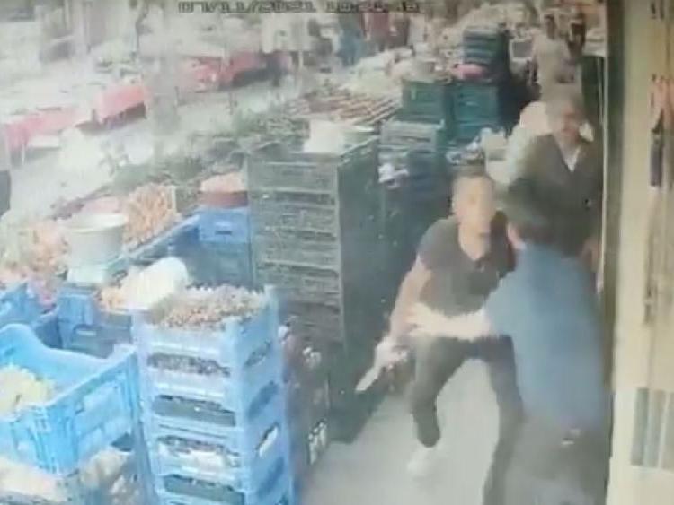 Beyoğlu'nda pazar tezgahının başına gelen bir şahıs, önceden husumeti bulunan pazarcıyı defalarca bıçakladı. Bıçağı elinden alınan saldırgan bu kez de pazarcıyı tekme ve yumruklarla dövdü.