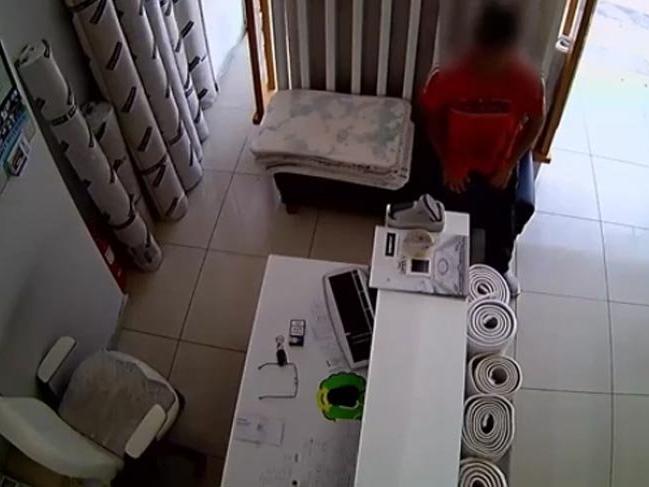Güvenlik kamerası görüntülerinde, Ö.G.'nin bir iş yerindeki masadan cep telefonunu çaldığı anlar görülüyor.