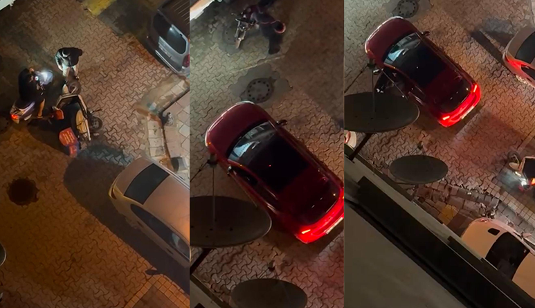 Ancak kurye saldırıya uğrayacağını anlayınca motosikletten inerek uzaklaştı. Öfkeli sürücü küfürler ettikten sonra “beni mi vuracaksınız diyerek kuryenin bıraktığı motosiklete zarar verdi.