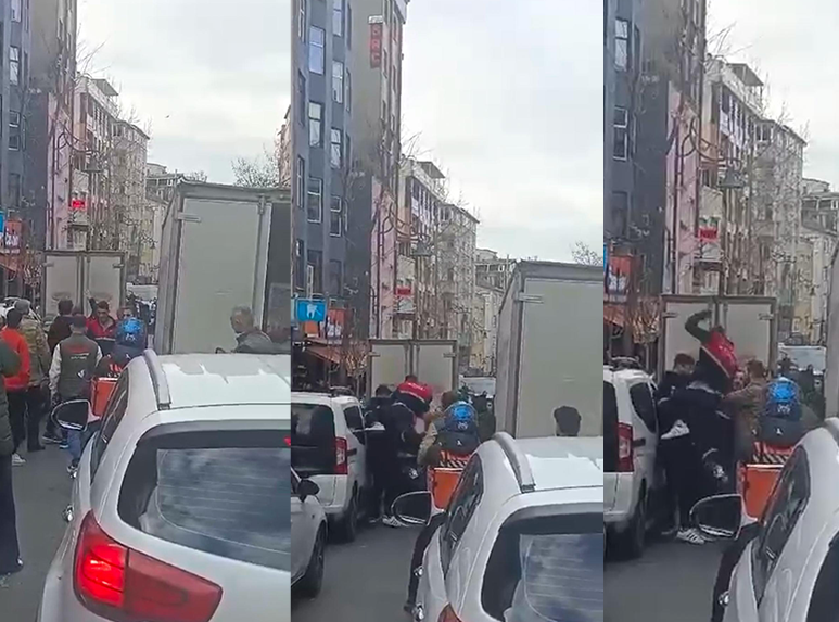 Kağıthane'de, tek yön olan caddede aynı istikamette seyreden iki sürücü arasında çıkan tartışma, kısa sürede büyüyerek kavgaya dönüştü. Çevredekilerin ayırmaya çalıştığı kavgada taraflardan biri kendisini tutan kişiden kurtularak önce zıpladı sonra yumruk attı.