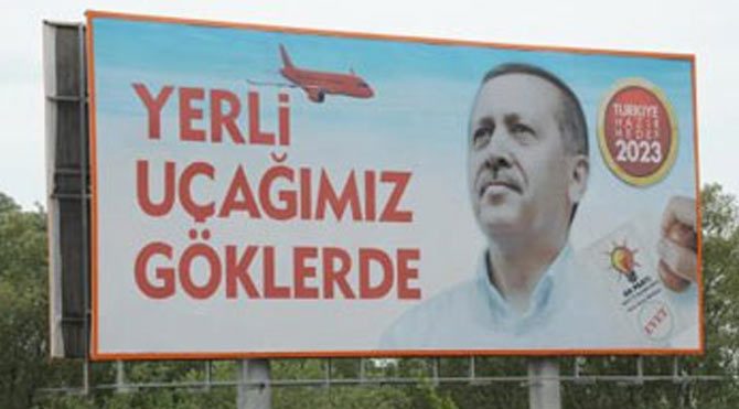 2011 seçimlerinde hazırlanan AKP afişlerinde "yerli uçağımız göklerde" denilmişti. Ancak Türkiye'nin şu an ürettiği bir uçak yok. Yine yerli helikopter, yerli otomobil vaatleri de afişlerdeki yerini almıştı.