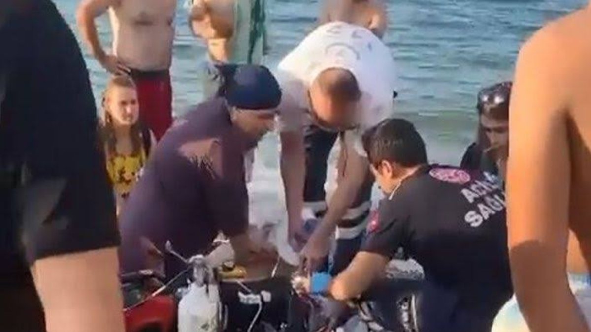 Bir anda Başoğlu’nunun hareketsiz kaldığını görenler denize girerek Başoğlu’nu sahile çıkartıp yardım istedi.