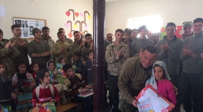 BİTLİS’te yürütülen operasyonlarda görev alan askerler Merkeze bağlı Başmaklı Köyündeki çocukların karneleri ile birlikte çeşitli hediyeler dağıttı.