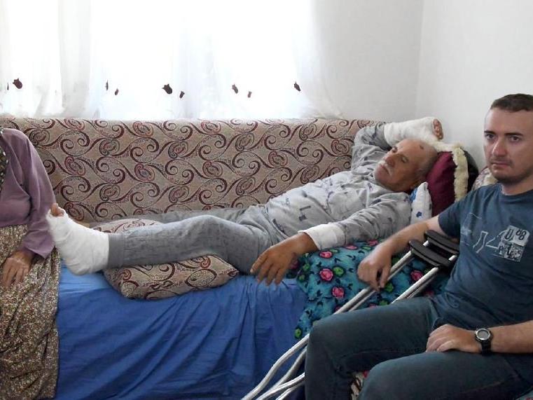 Evinde dinlenen Kıbrıs gazisi Ali Aydın, "Dün öğle saatlerinde hayvan otlatıyordum, o da kazlarını otlatıyordu orada. Ben de abdest alayım, öğle namazını ağacın altında kılayım dedim. Ağacın altında birkaç tane ördek vardı. Ona seslenip, "Namaz kılacağım, burada ördeklerin pisletmesin" deyip almasını istedim. Bana küfretmeye başladı. Elinde demir dirgen vardı, bana saplamaya geldi. Saplayamayınca vurmaya başladı. Kendimi korudum ve bu hale geldim. Orada olay yatıştı, hanımı geldi, ikinci kez vurmaya başlayınca bacağım kırıldı. Ondan şikayetçiyim" diye konuştu.