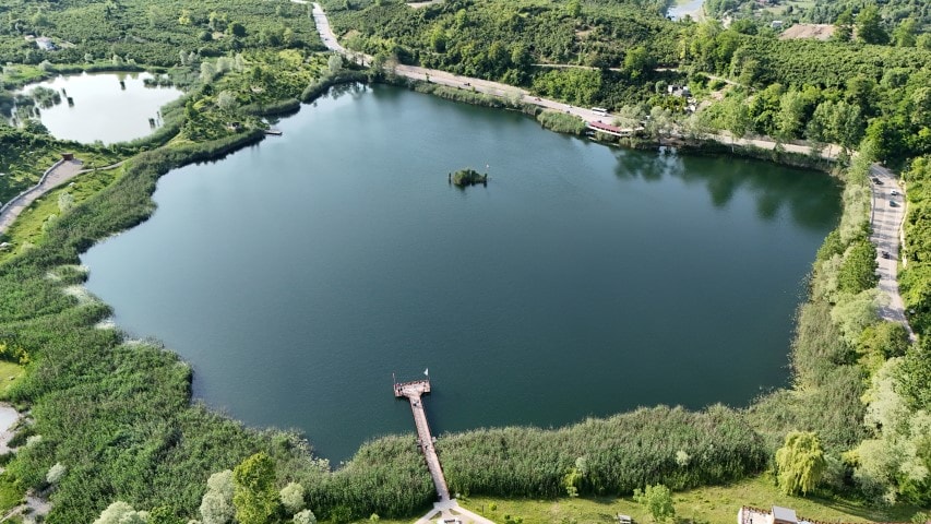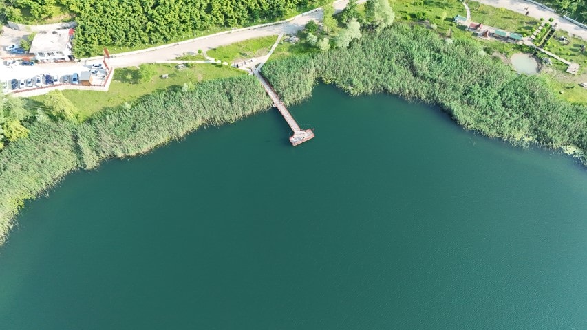 Doğal manzarası ve bitki örtüsüyle ilgi gören göl, dron ile havadan görüntülendi.