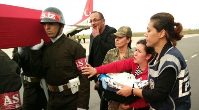 Şehit Uzman Onbaşı Erdi Demirer'in tabutunun askerlerin omzunda uçaktan indirilip cenaze aracına taşınması sırasında aynı uçakla gelen eşi Burcu Demirer, pusette kucağında taşıdığı 3 aylık oğlu Çağan Demirer ile birlikte tabutun arkasından yürüdü. Tabutu taşıyan askerlere 'Eşimi nereye götürüyorsunuz' diyerek ağladı. Şehidin annesi ve babası ile kardeşleri gözyaşına boğuldu.