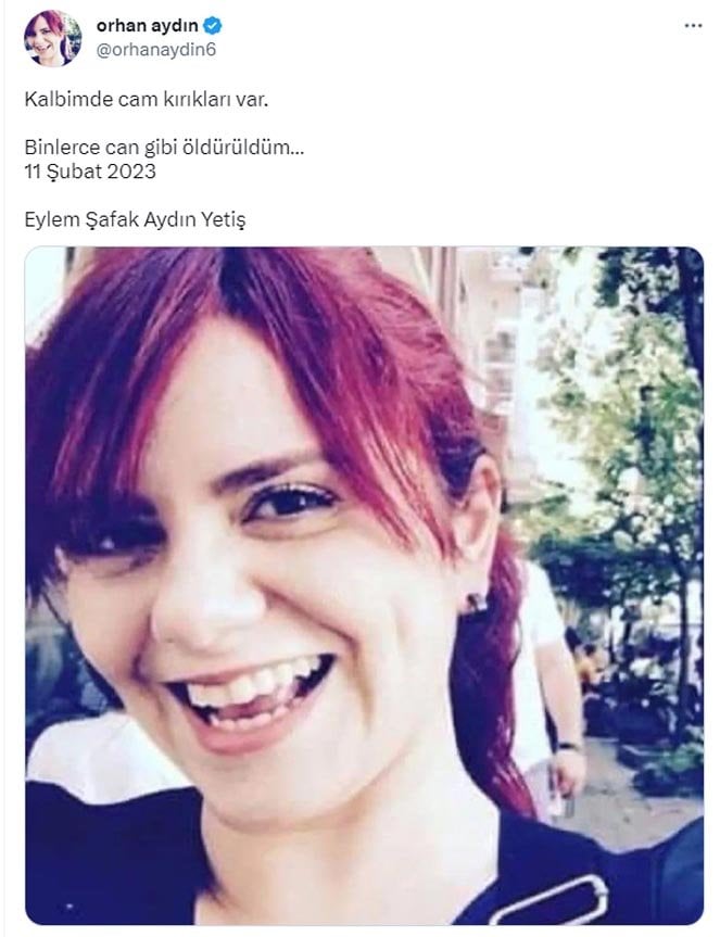 Tiyatrocu Orhan Aydın, Hatay'da enkaz altında kalarak hayatını kaybeden kızı Eylem Şafak Aydın Yetiş ile ilgili Twitter hesabından paylaşım yaptı.