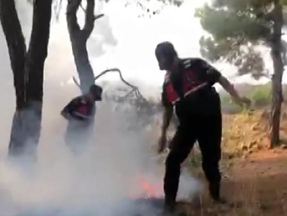 Bu sırada ekipler, yangının büyümemesi için giydikleri botlarla alevlere müdahale etmeye çalıştı. Bu anlar, cep telefonu kamerasıyla görüntülendi. Bir süre sonra gelen orman işçilerinin de müdahalesi ile yangın, kısa sürede kontrol altına alınıp, söndürüldü. (DHA)