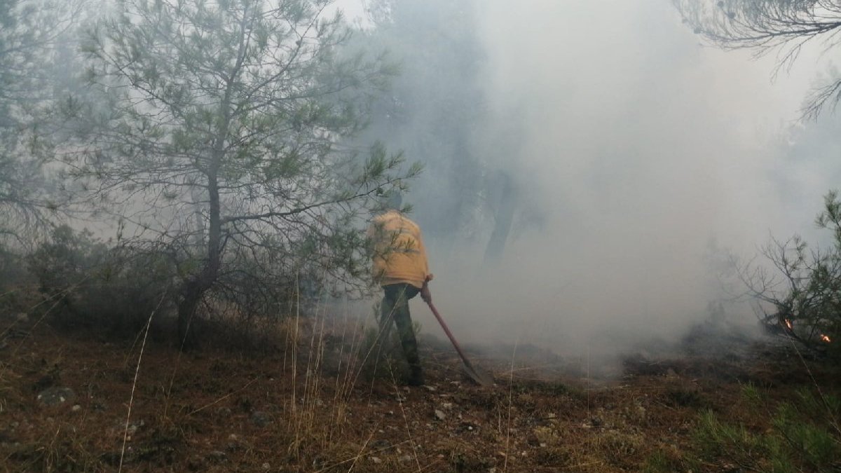 Yaklaşık 2 saat süren çalışmanın ardından çıkan yangın büyümeden söndürüldü. Bölgede soğutma çalışmaları devam ediyor. (AA)