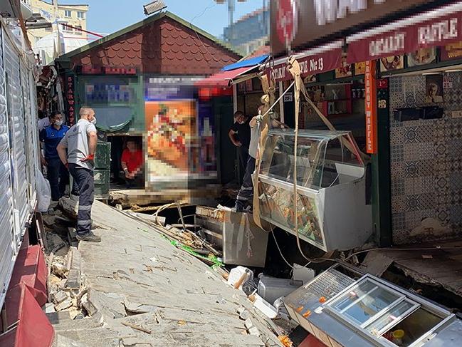 sokağın çökmesinin ardından boşaltılan dükkanların yıkımına başlandı. Belediye ekipleri bir yandan dükkanları yıkarken diğer yandan da enkaz kaldırma çalışmalarını sürdürüyor.
