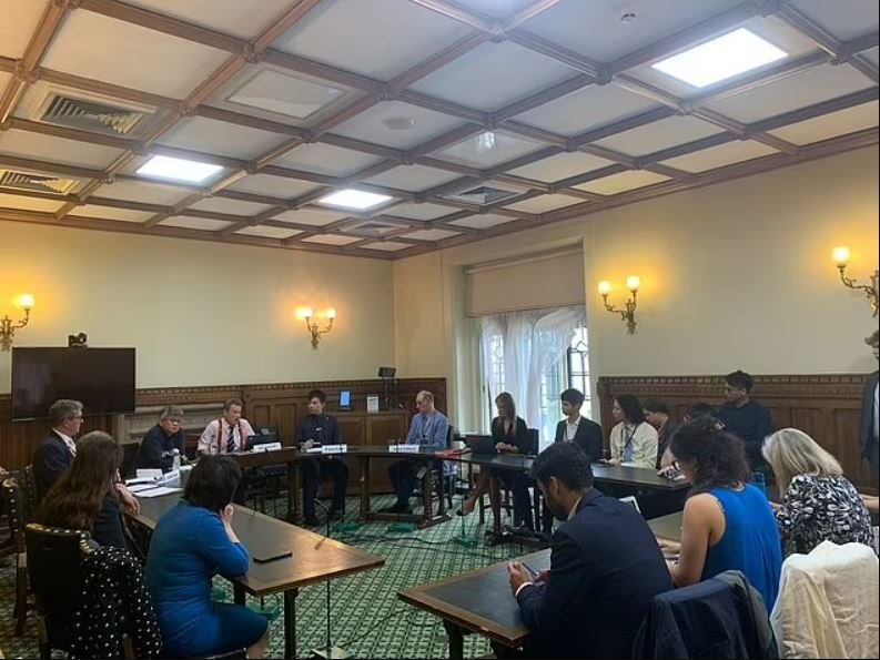 Ancak turist olduğunu iddia eden bir adam, yüksek güvenlikli Parlamento Evleri'nin derinliklerindeki bir komite odasında, yalnızca davetlilerin katılabileceği konuşmaya girmeye çalıştı.