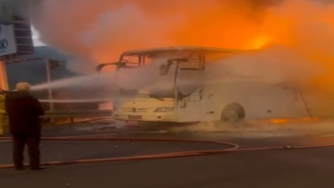 Olay, saat 07.30 sıralarında Gebze-Orhangazi-İzmir Otoyolu Orhangazi Tüneli yakınlarında meydana geldi. Çanakkale'nin Lapseki ilçesindeki Plevne Ortaokulu'ndan İstanbul'a gezi için yola çıkan 39 öğrenci, 6 öğretmen ve 2 rehberi taşıyan, Ahmet Kantarcı (66) idaresindeki 17 HT 555 plakalı otobüs, seyir sırasında motor bölümünden alev aldı. Şoför, otobüsü emniyet şeridine çekerek, öğrenci ve öğretmenleri tahliye etti. Öğrenciler güvenli alana alındıktan kısa süre sonra otobüs alev topuna döndü. İhbarla olay yerine itfaiye ekipleri sevk edildi. Yangın, itfaiye ekipleri tarafından söndürüldü. Yangında otobüs kullanılmaz hale geldi. Öğrenci ve öğretmenler olay yerine çağrılan başka otobüsle yola devam ederken, yangınla ilgili inceleme başlatıldı.
