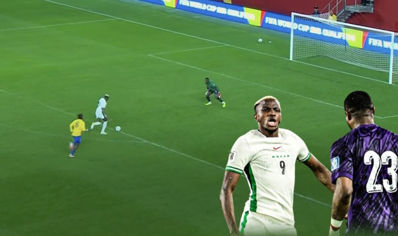 Attığı 2 şık golle galibiyetin mimarlarından olan Osimhen uzatma bölümüne geçilmeden hemen önce, maç 1-1 devam ederken Gabon yarı sahasında bomboş kaldı. Topu sürerek ceza alanına kadar gelen yıldız golcü Gabon kalecisi ile karşı karşıya çok rahat pozisyonda topu dışarıya attı!