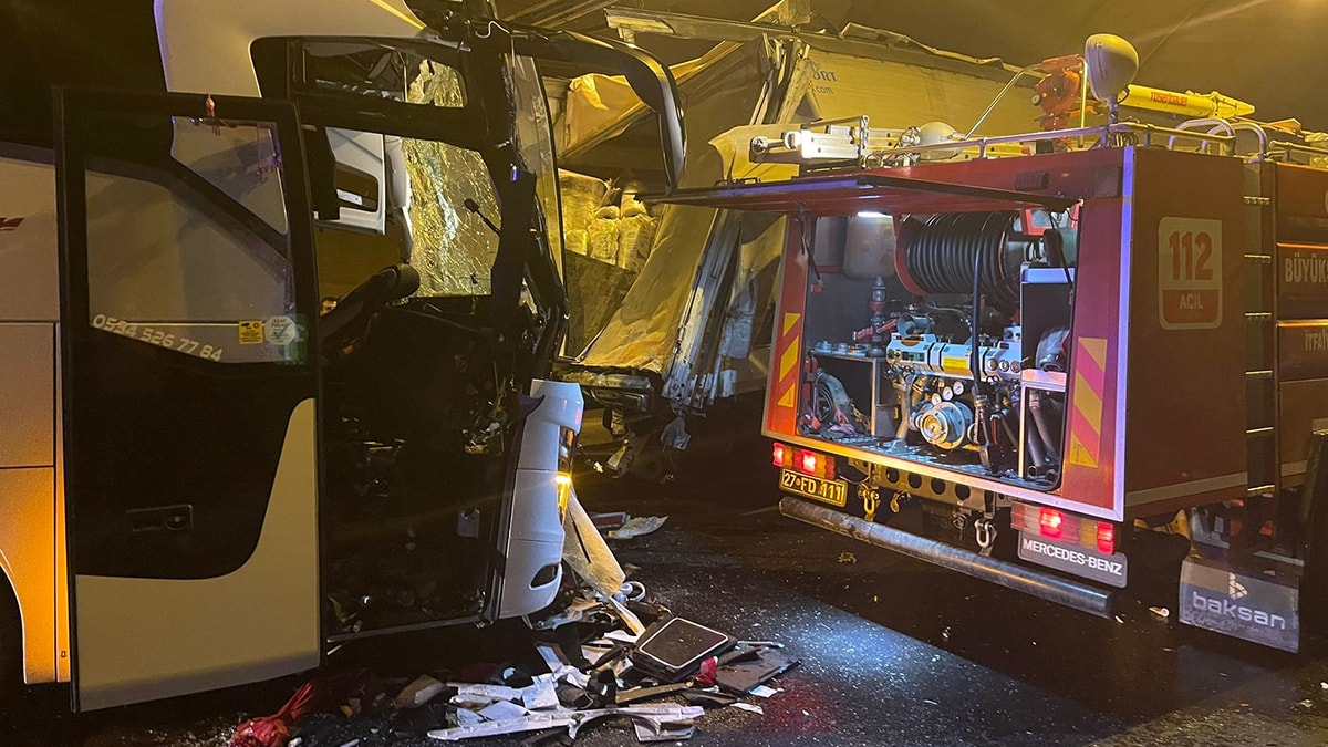 Osmaniye’de sürücüsü öğrenilemeyen Can Dersim Tuncelililer firmasına ait 62 AF 666 plakalı yolcu otobüsü, Tarsus-Adana-Gaziantep otoyolu Bahçe ilçesi yakınlarındaki Kızlaç Tüneli'nde 33 DIN 90 plakalı TIR’a arkadan çarptı.