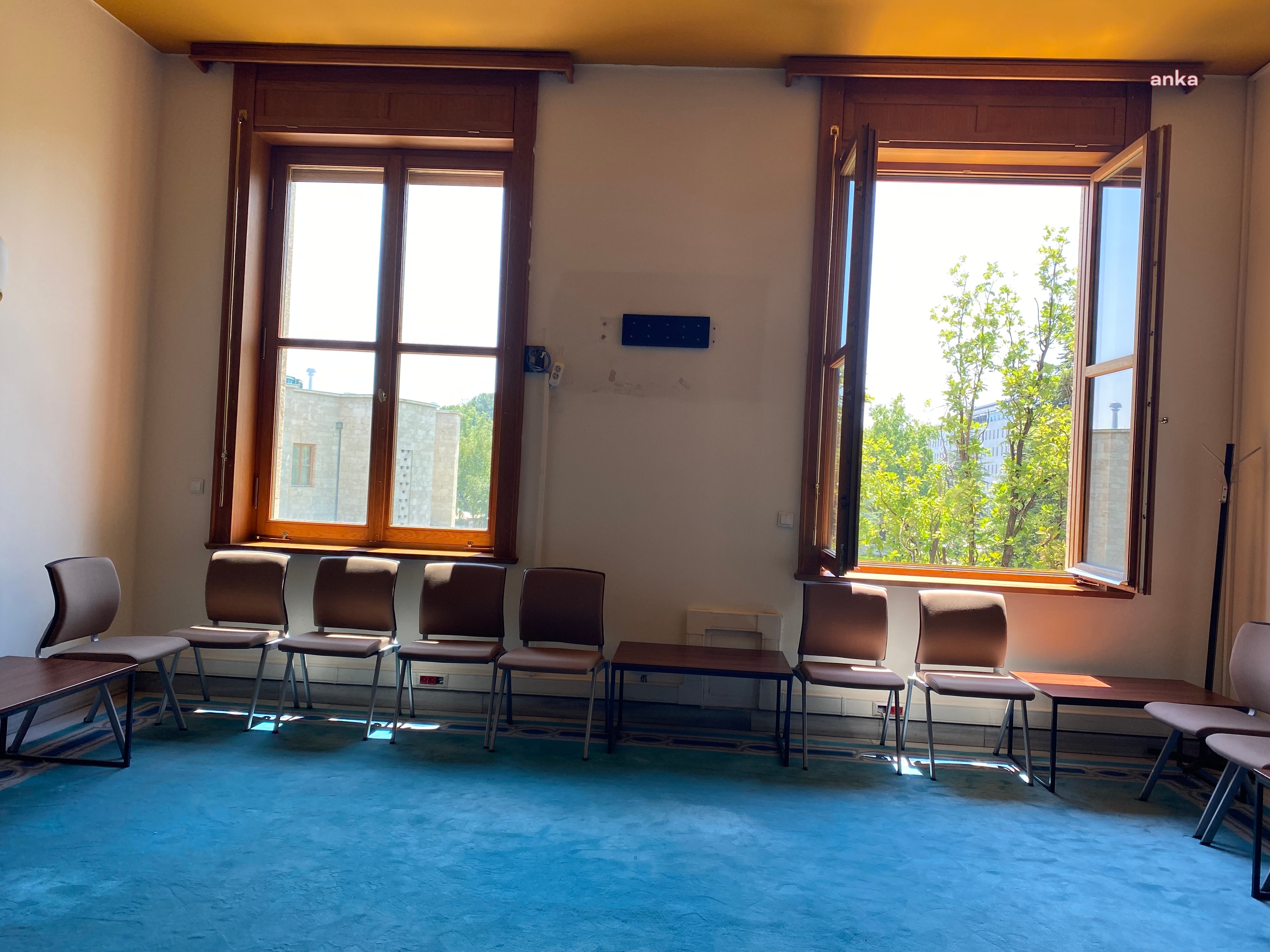 Komisyon toplantı salonuna giden koridorda görevliler yoğun güvenlik önlemi aldı, koridordaki televizyon kaldırıldı.