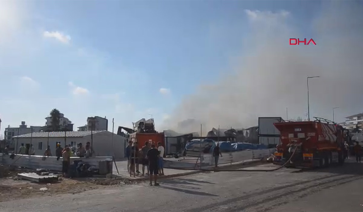 Otel inşaatında çalışan işçilerin uyumak için kullandığı konteynerde başlayan yangın kısa sürede yayıldı.