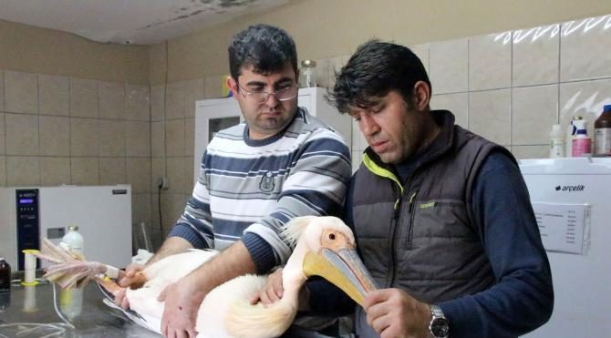 "Merkez otellerimizden gelen haber sonucunda ekibimiz giderek tepeli pelikan olarak bilinen bir su kuşu getirdi. Düşkün vaziyette olduğunu gözlemlemiş çevredekiler. Bu yüzden aradılar. Biraz müşahede altında kalması ve desteklenmesi gerekecek. Sadece muhtemelen çırpınırken parmaklarından birinde ufak bir kırık şekillenmiş. Onun dışında yaralanması söz konusu değil."