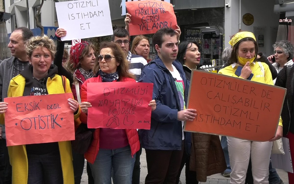 Gündoğdu Meydanı’nda toplanan otizmli bireyler ve aileleri, ellerinde "Biz de varız", "Otizmli olmak tercih değildir", "Otizmli istihdam et", "Ben meleksem niye yanımda değil" ve "Eksik değil otistik" yazılı pankartlarla Kıbrıs Şehitleri Caddesi’nde bulunan Türkan Saylan Kültür Merkezi’ne kadar yürüdü.