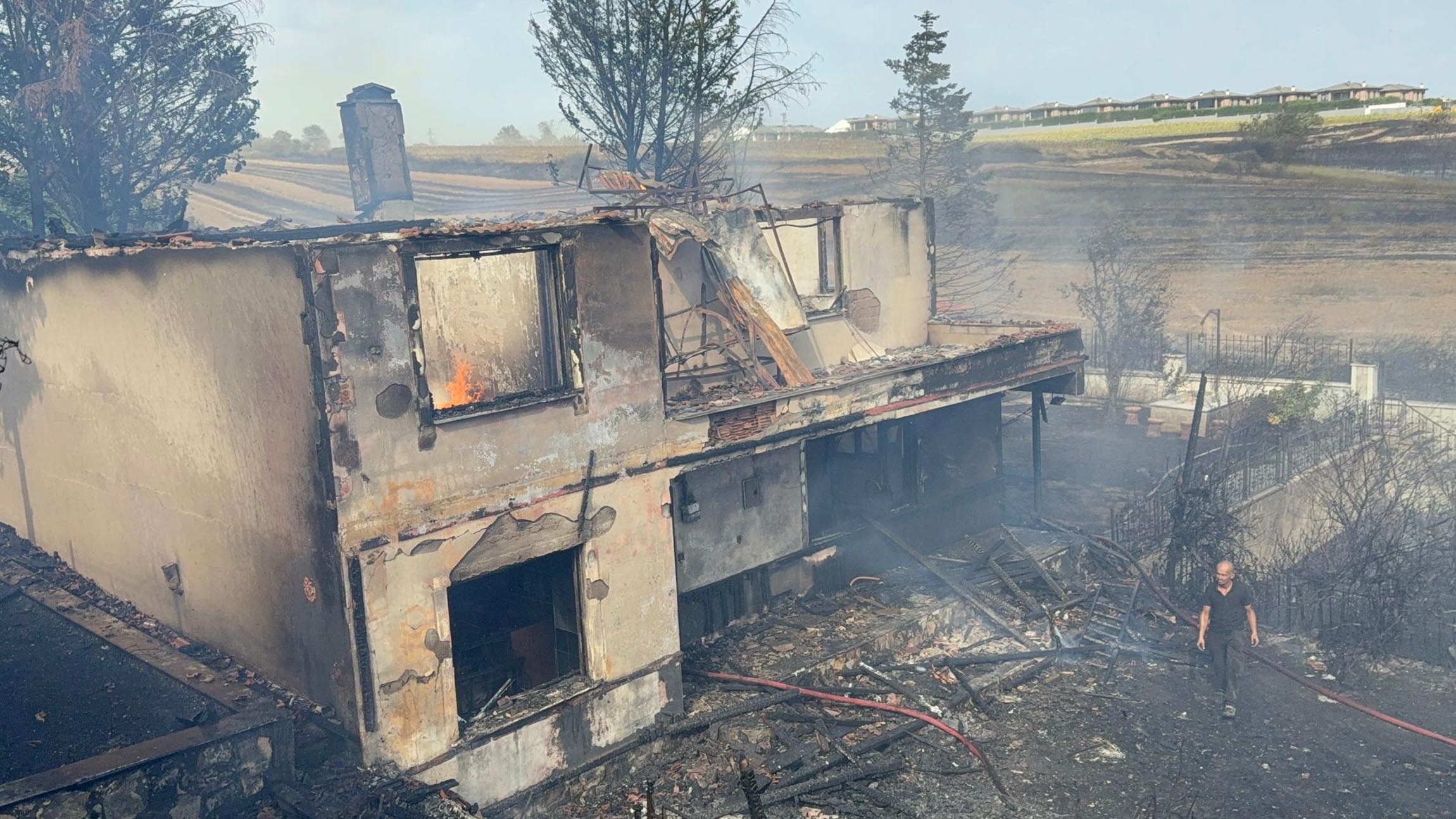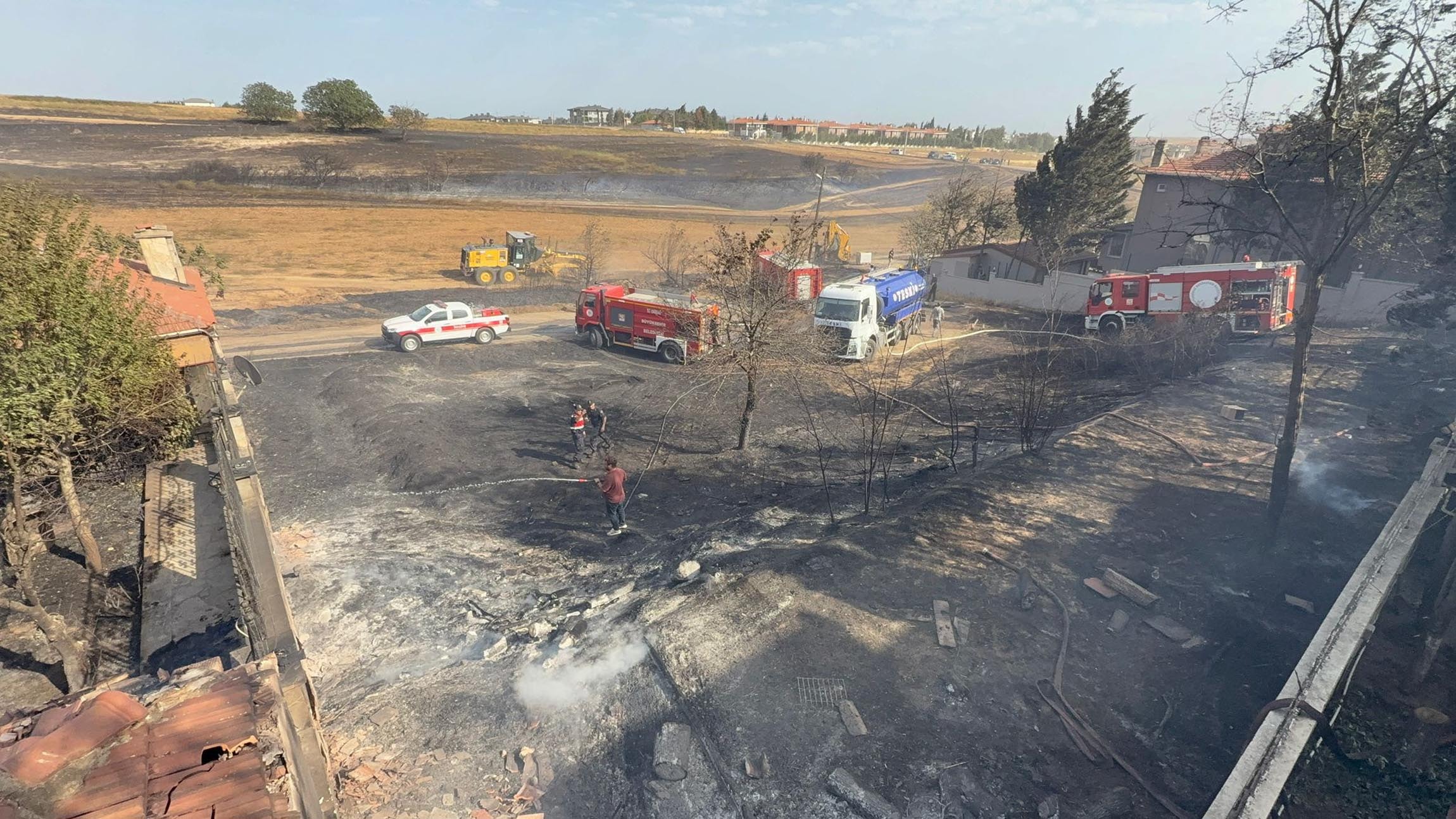 Rüzgarın da etkisiyle kısa sürede geniş alana yayılan alevler yerleşim alanlarında ilerleyip evlere de sıçradı.