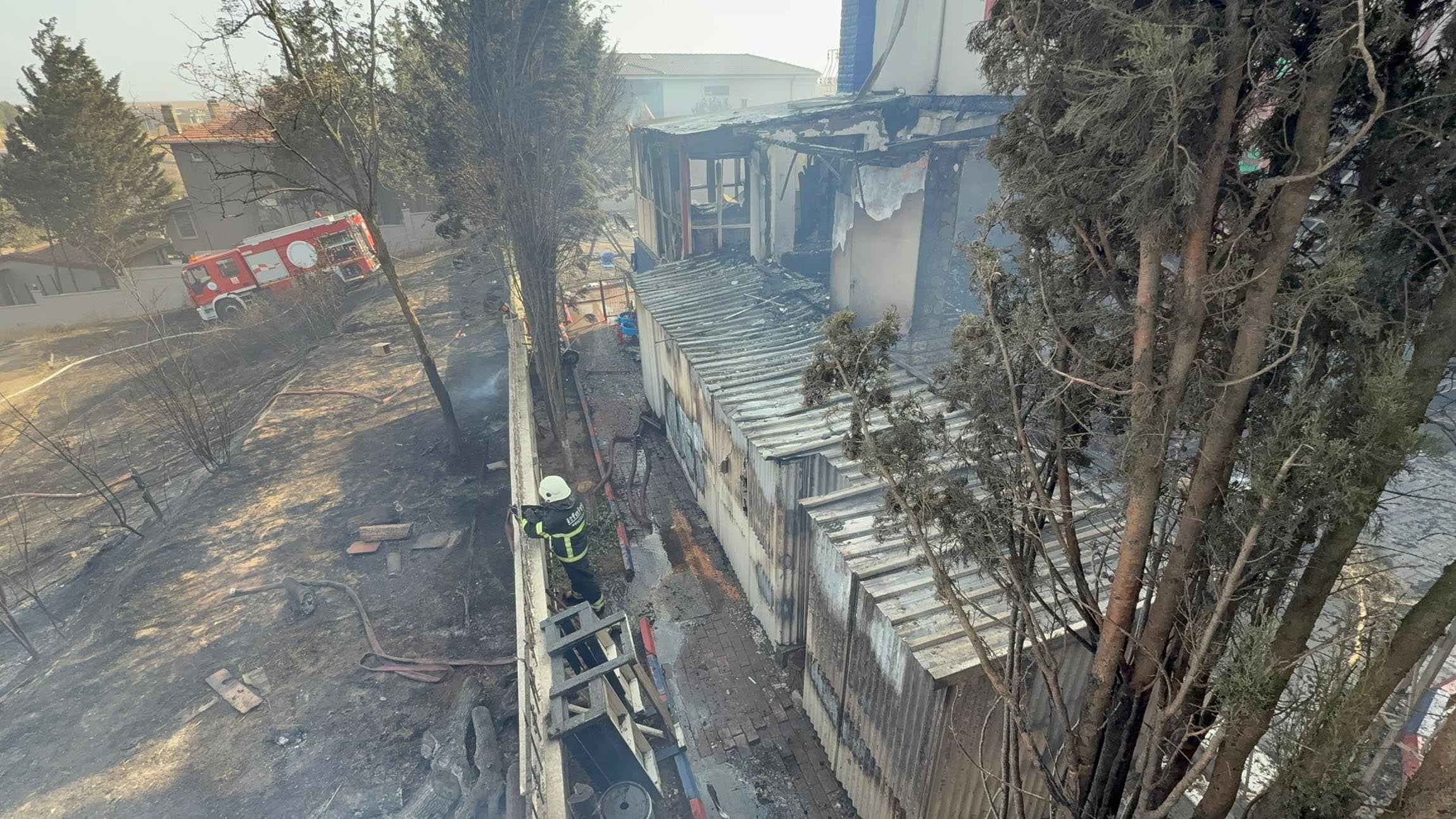 İhbar üzerine bölgeye çok sayıda itfaiye ekibi sevk edildi. İtfaiyeciler, alevlere müdahale ediyor.