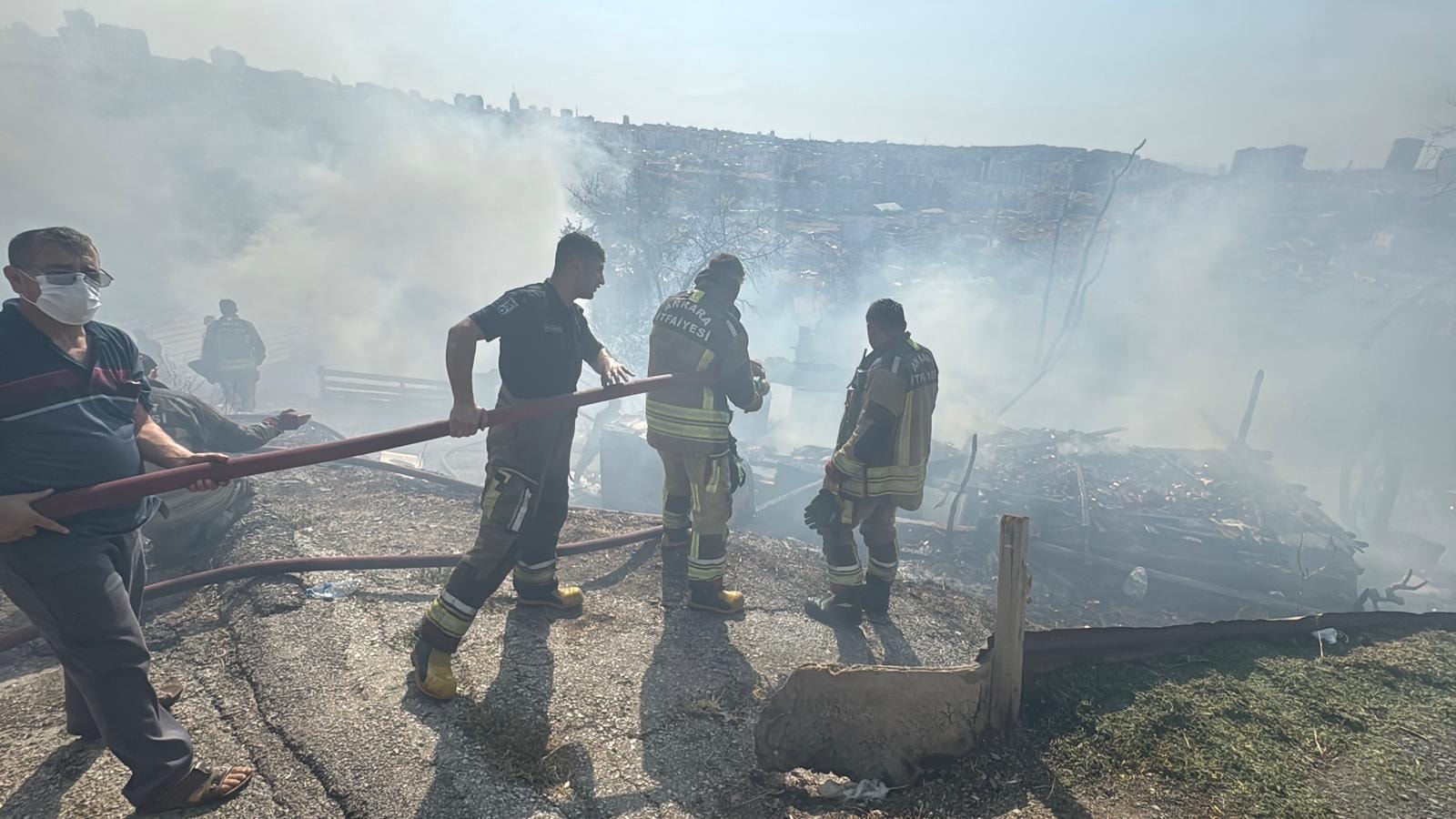 Rüzgarın etkisiyle büyüyen alevler, kısa sürede çevredeki gecekondulara sıçradı.