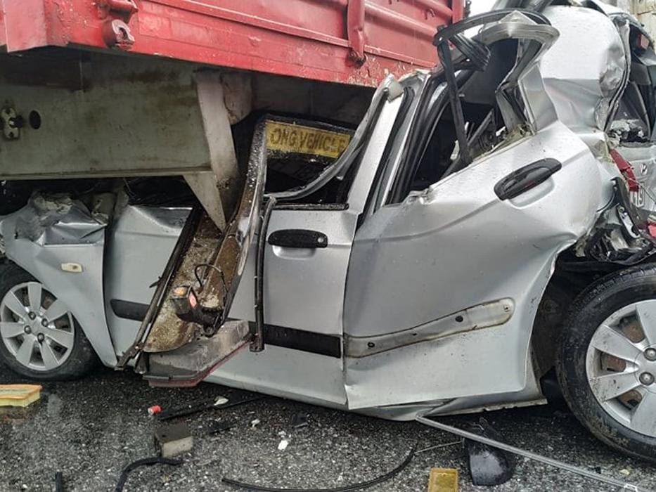 Aydın-İzmir otobanında seyir halinde olan otomobil önünde seyreden TIR'ın altına girdi. TIR'ın altına giren otomobile arkadan gelen bir başka araç çarptı.