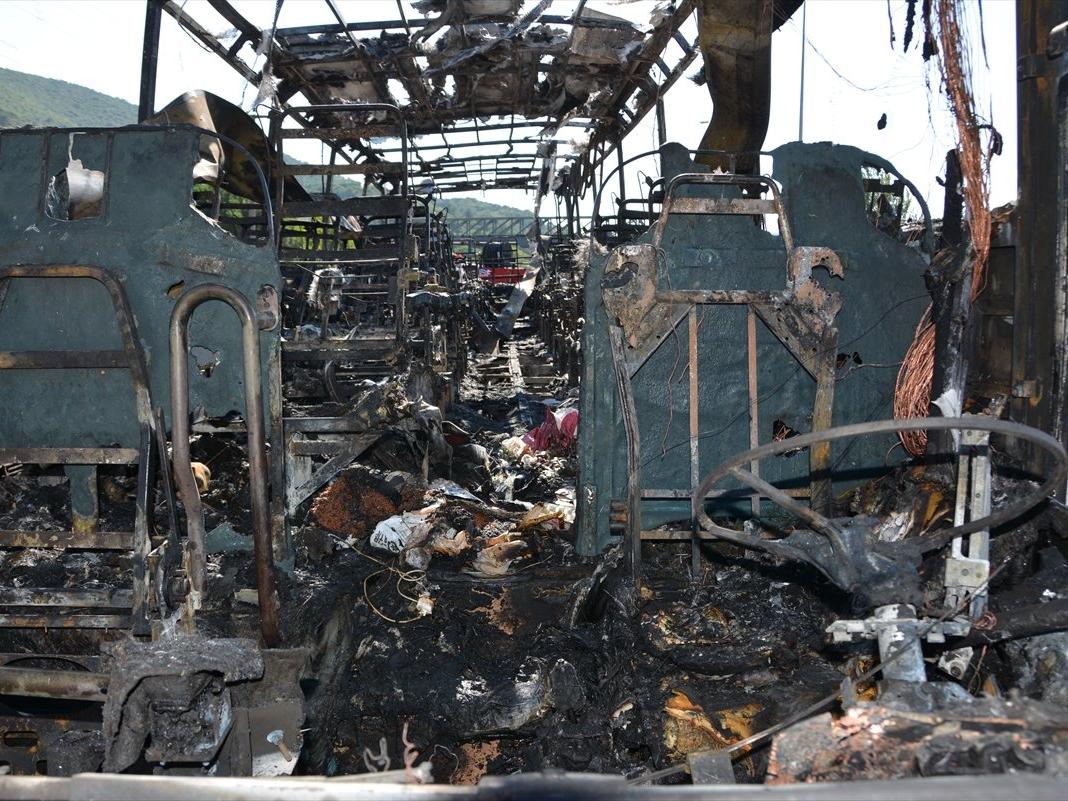 Yanan otobüsün şoförleri Nihat Demir (48) ve Hüseyin Hakkıoğlu'nun (41) gözaltındaki işlemleri sürüyor.