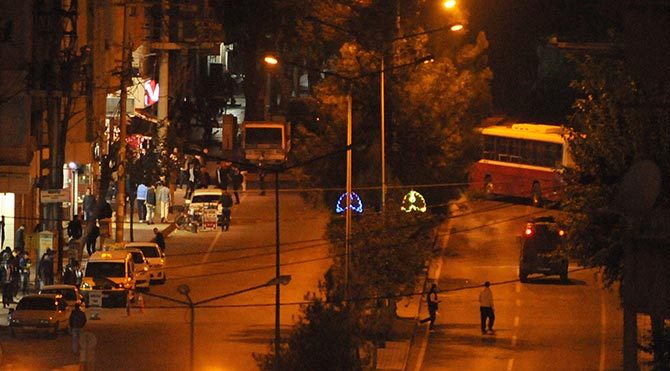 Diyarbakır'ın merkez Bağlar ilçesinde akşam saatlerinde Koşuyolu caddesine inen yüzleri maskeli bir grup, el yapımı patlayıcılar, havayi fişekleri attıktan sonra yolu trafiğe kapattı. Kontak anahtarını aldıkları Belediye otobüsüyle yolu kapatan göstericileri polis, havaya ateş açarak dağıttı.