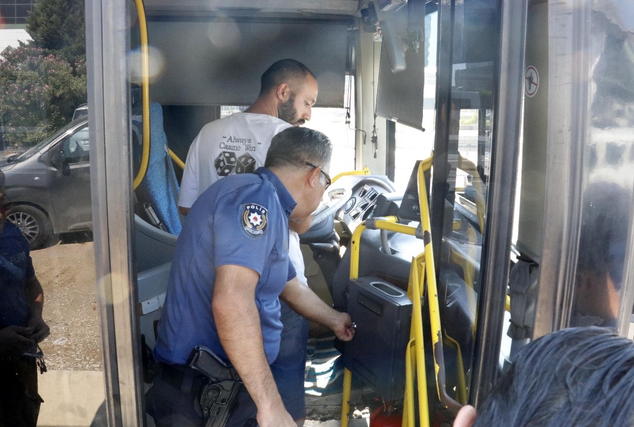 Ramazan K., içerisinde yolcu bulunan otobüsün şoförü Ferhat İlhan ile tartışmaya başladı. Sürücü İlhan'ın yüzüne yumruk atan ve otobüsün kontak anahtarını alan Ramazan K., otomobiline binerek Kemer istikametine doğru uzaklaştı.