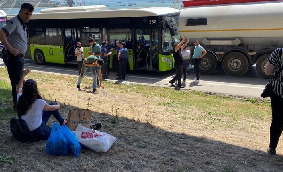 Kaza, saat 11.30 sıralarında D-100 kara yolu Hereke geçişinde meydana geldi. İzmit-Gebze arasında sefer yapan sürücüsünün ismi öğrenilemeyen 41 BR 230 plakalı belediye halk otobüsü, iddiaya göre önüne çıkan TIR'a çarpmamak için sürücüsü ani fren yapan 54 ABC 392 plakalı akaryakıt yüklü tankere çarptı.