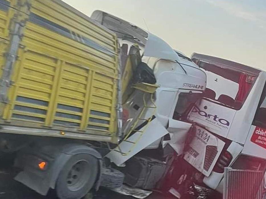 Otobüs ve tırların karıştığı zincirleme kaza: 1 ölü 4 yaralı