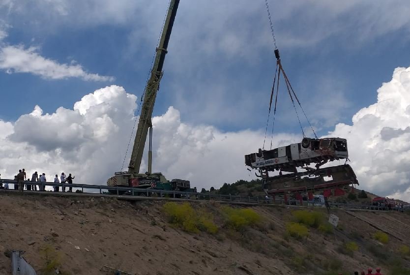 7 kişinin hayatını kaybettiği, 21 kişinin de yaralandığı kazada, şarampole yuvarlanan otobüsü için çıkarmak için çalışma başlatıldı. Devrilen otobüs vinçle çıkarılıp, aracın altında ölü ya da yaralı olup olmadığı araştırıldı. İncelemeler sonrası otobüs, çekici ile bölgeden götürüldü.