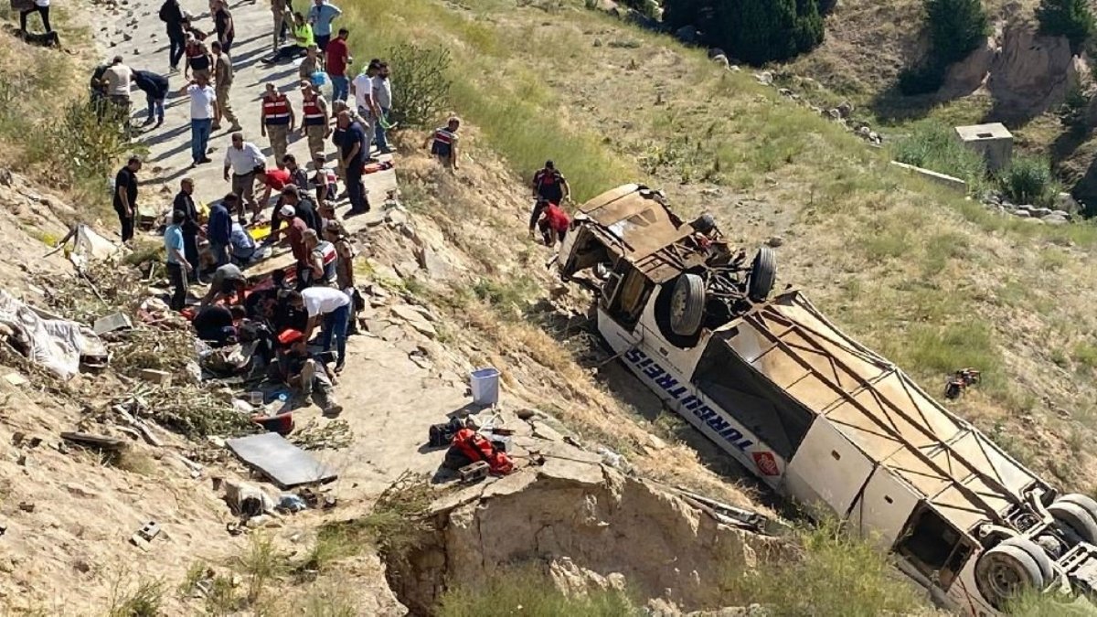 Yaklaşık 50 metre yükseklikten düştükten sonra ters dönen otobüsteki 7 kişi öldü, 23 kişi yaralandı.