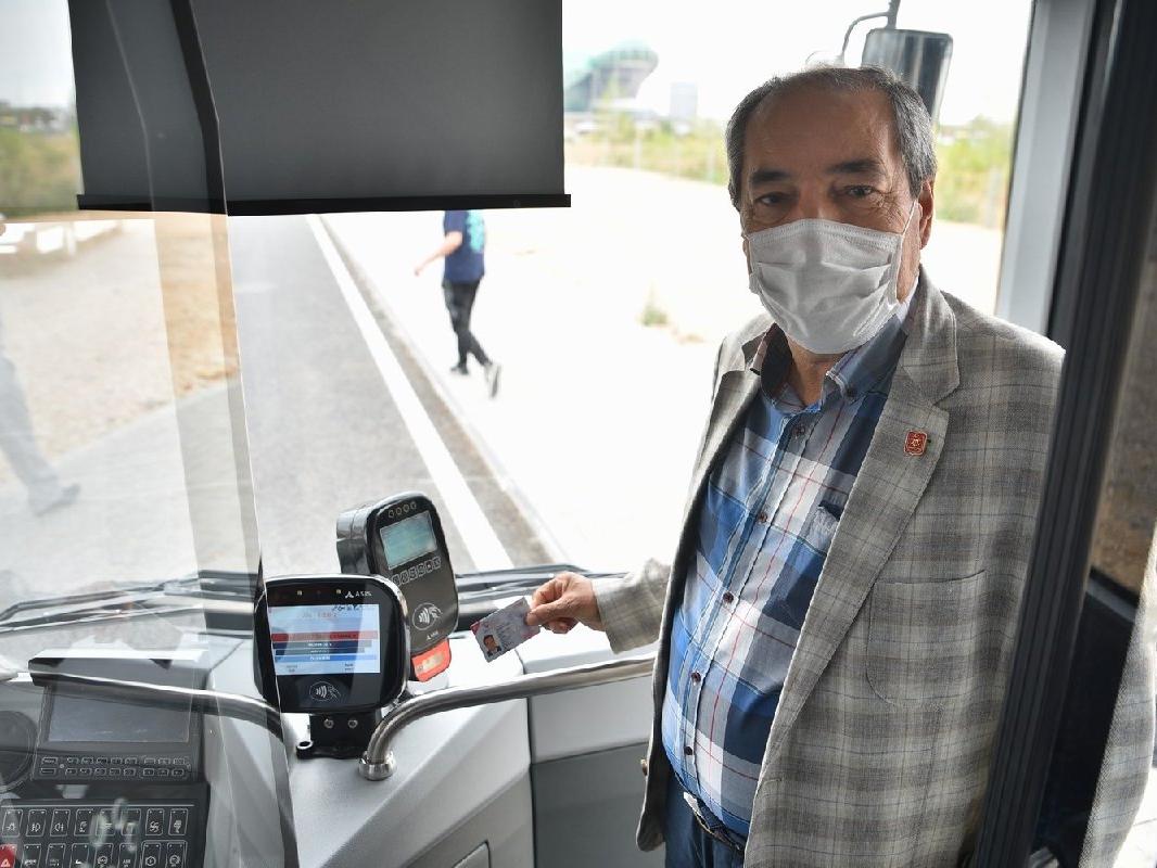 Bursa'da Belediye otobüslerini kullanan gaziler ve şehit yakınları, Bursakart’larını cihaza okuttuklarında, ‘Vatan size minnettar’ anonsunu duyuyor.