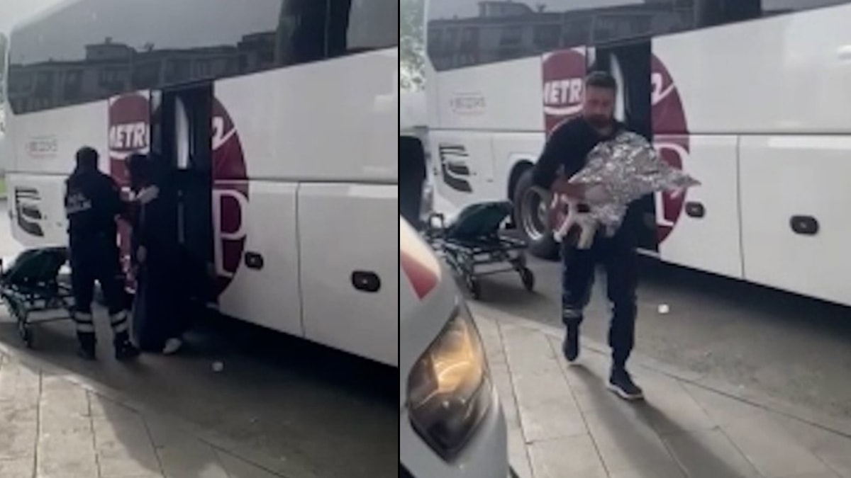Düzce'de şehirlerarası otobüs terminalinde bir kadın otobüste doğum yaptı.