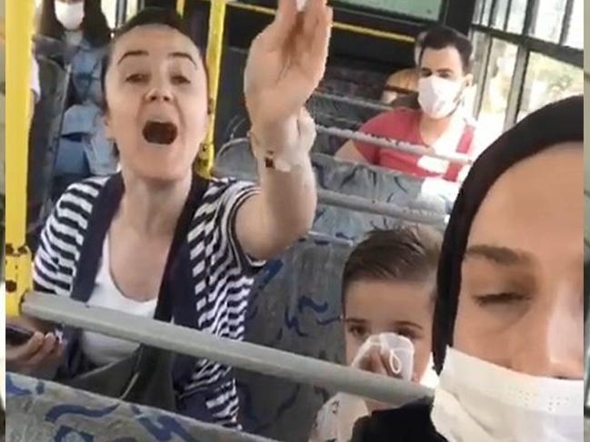 Edinilen bilgilere göre, Kocaeli’nin İzmit ilçesinde meydana gelen olayda, ismi öğrenilemeyen bir kadın maskesiz halk otobüsüne bindi. Otobüs sürücüsü kadına maskesiz otobüse binemeyeceğini söyledi. Uyarılara aldırış etmeyen kadın koltuğa oturarak maske takmayacağını söyledi. Duruma otobüste bulunan vatandaşlar da tepki göstererek o anları cep telefonu ile görüntüledi. Otobüs sürücüsü kadını tekrar uyararak polis çağırmak zorunda kalacağını söyledi. Kadın otobüs sürücüsüne, “Kapat çeneni nasıl otobüse almıyorsun” diyerek cevap verdi. Daha sonra kadın kendisini uyaran bir vatandaşa da elindeki maskeyi göstererek, “Al bak takmıyorum” dedi. CEZAİ İŞLEM UYGULANDI Daha sonra kadın kendisini görüntüleyen bir kişiye saldırarak darp etmeye çalıştı. Bu sırada otobüste bulunan çocuklar ise büyük panik yaşadı. Araya giren vatandaşlar kadını sakinleştirmeye çalıştı. Saniye saniye görüntülenen olay sonrasında otobüs sürücüsü otobüsteki yolcular ile birlikte polis merkezine gitti. Olayla ilgili başlatılan inceleme sonrasında maske takmayı kabul etmeyen T.T. adlı kadına Kocaeli İl Hıfzıssıhha Kurulunca ilgili kanun maddesi gereği 790 TL idari para cezası uygulandı.(İHA)