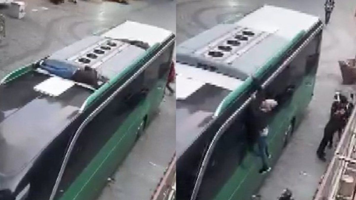Olay, sabah saat 08.15 sıralarında Talimhane Topçu Caddesinde meydana geldi. Edinilen bilgiye göre, çevredeki bir otelde kalanlar, uluslararası sefer düzenleyen otobüsün üstünde saklanan 2 kişiyi fark edince oteldeki görevlilere bildirdi.