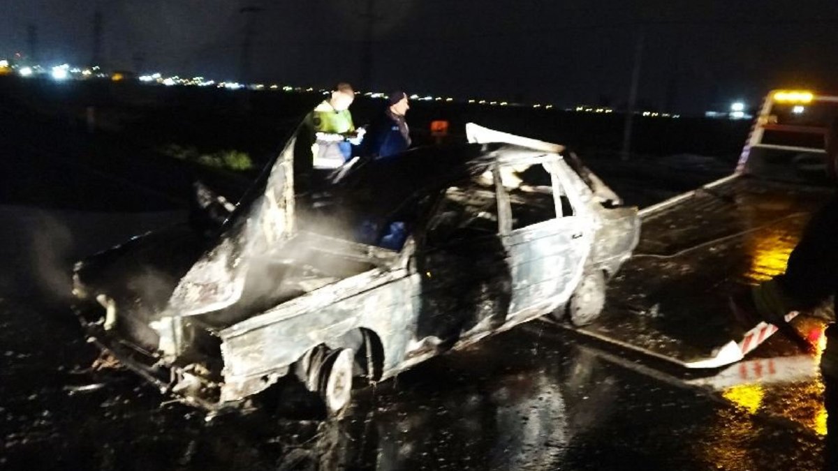 Bursa'dan memleketleri Adana'ya gitmek için yola çıktıklarını söyleyen sürücü Enes Akboğa, Bir araç önümüze çıkınca, ben de ona çarpmayayım diye direksiyonu çevirip, firene bastım. Yağışlı havada araç kayıp 4-5 takla attı. Sonrasında da bu hale geldik. Biz hastaneye gelirken aracımız tamamen yanmış. Biz işçiyiz, ormanda çalışıp memleketimize gidiyorduk. dedi. (DHA)