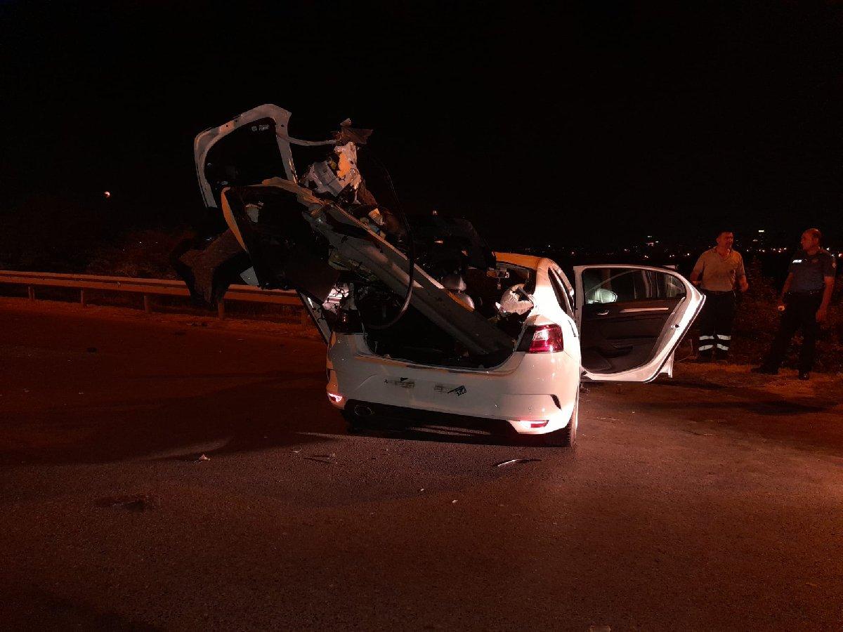 Kontrolden çıkan otomobil, yol kenarındaki bariyerlere çarptı. Çarpmanın etkisiyle otomobilin ön kısımlarından giren bariyer arka bagajdan çıktı.