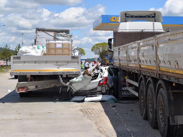 Çarpmanın etkisiyle otomobilin bir kısmı, TIR'ın altında kaldı. Haber verilmesi üzerine sağlık, jandarma ve polis ekipleri kaza yerine geldi. Otomobilde sıkışan 4 kişi, ekiplerce araçtan çıkarıldı. Sağlık ekiplerinin yaptığı incelemede sürücü Şefika Azoğlu ile kayınvalidesi Emine Azoğlu ve akrabası Hasan Kısmet'in yaşamını yitirdiği belirlendi.