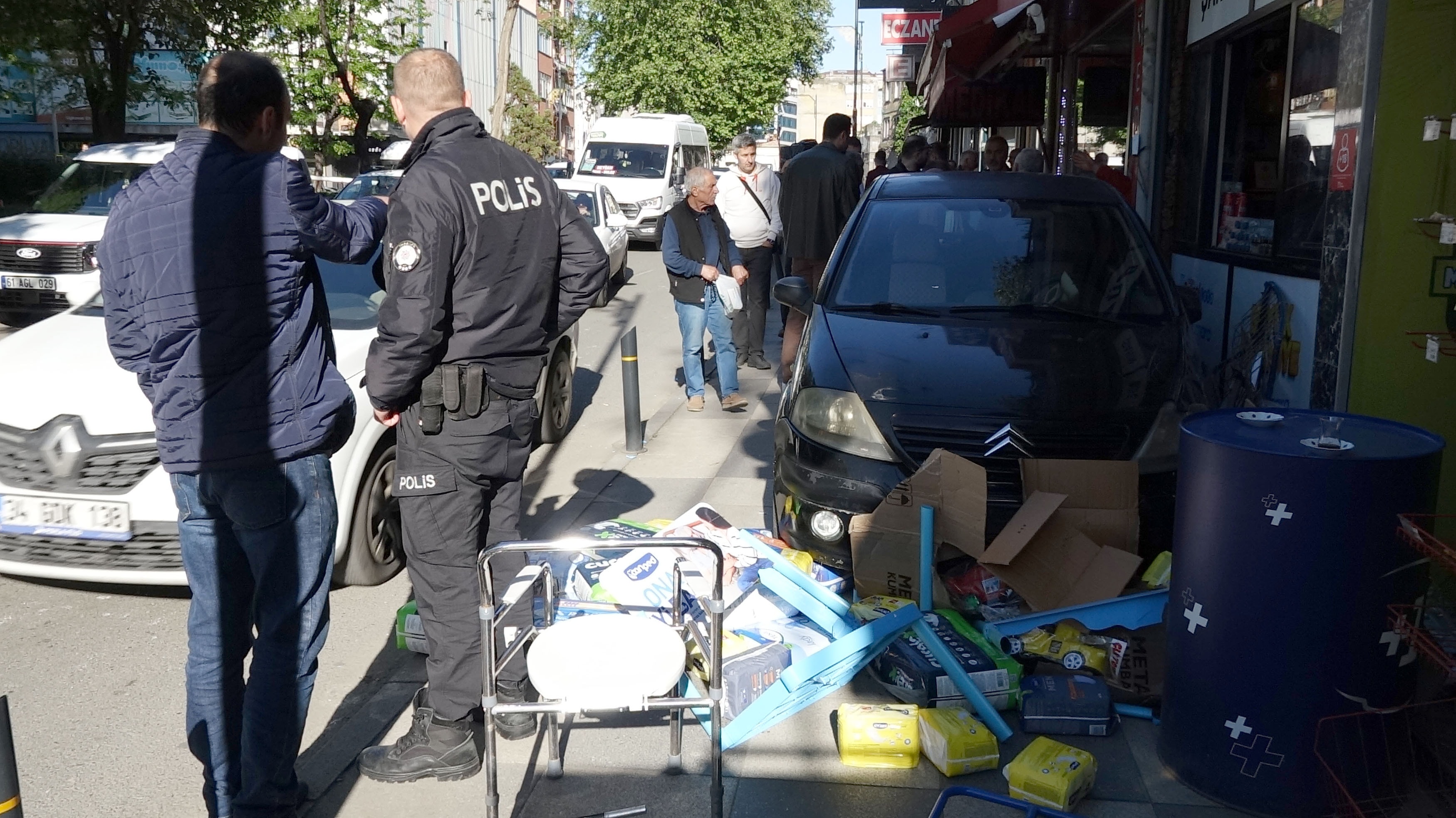 Kaldırımda hızla ilerleyen otomobil, medikal, kırtasiye ve büfe olan 3 iş yerine çarptı. Bu sırada dükkanlarının önünde bulunan esnaf, koşarak son anda kurtuldu. Kazada, iş yerlerinin vitrin ve camları kırıldı, kaldırımdaki ürünler zarar gördü.