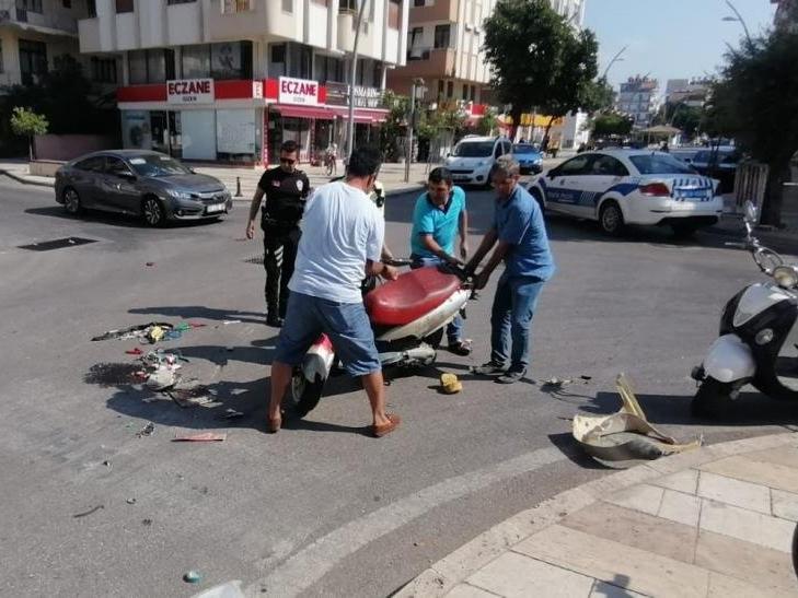 Kaza, öğle saatlerinde Aşağı Hisar Mahallesi Mithatpaşa Caddesi üzerinde meydana geldi. Edinilen bilgiye göre, Demokrasi Bulvarı istikametinden Hisar Caddesi istikametine gitmekte olan Duran Y.E.’nin kontrolünde bulunan motosiklet ile Nida S.’nin kullandığı 07 SM 586 plakalı otomobil çarpıştı. Kazada motosiklet sürücüsü Duran Y.E. ile ve motosiklette yolcu olarak bulunan 11 yaşındaki oğlu Ahmet Y. yaralandı.