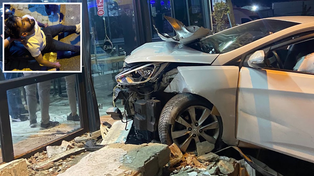 Sürücüsünün direksiyon hakimiyetini kaybettiği otomobil, cadde üzerindeki kafenin camına çarptı. Otomobilde bulunan iki kişi kapıyı açarak dışarı çıkarken biri bayıldı.