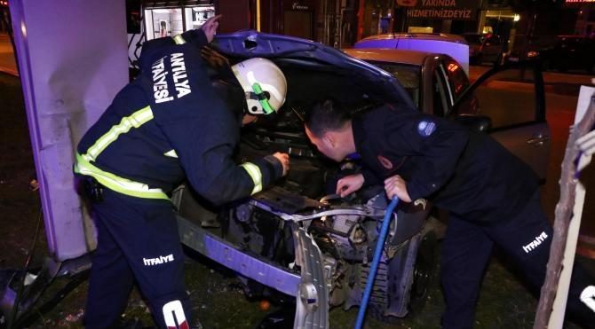Konyaaltı İlçesi Arapsuyu Mahallesi Atatürk Bulvarı'ndaki kaza, saat 02.30'da meydana geldi. Antalyaspor Kavşağı'ndan Kemer istikametine seyreden 34 yaşındaki Seval Ehliz yönetimindeki 07 D 3880 plakalı otomobil, belirlenemeyen nedenle kontrolden çıktı. Refüje çarparak savrulan otomobil, reklam tabelasına çarparak durdu.